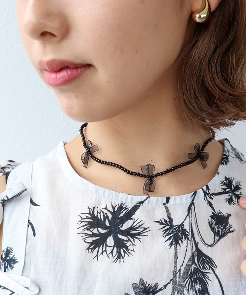 リボンモチーフがトレンド感満載のネックレス チョーカータイプの長さで首元にフィットし、デコルテを美しく魅せてくれます♪ アジャスター付きで長さ調整が可能◎ カジュアルスタイルからパーティーシーンまで 幅広いシーンで活躍してくれます♡