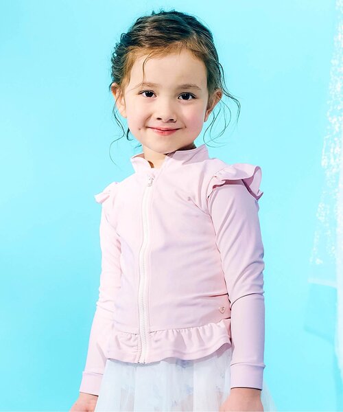 肩と裾のフリルがキュートなラッシュガード。シンプルで、どんなアイテムとも相性◎海やプールだけでなく、BBQなどのアウトドアシーンでも活躍してくれます!ジップアップタイプでサッと羽織れるので、1枚持っておくと便利なアイテム◎フードなしもうれしいポイントです!※画像の商品はサンプルです。 実際の商品と仕様、加工、サイズが若干異なる場合がございます。【取り扱い表示】最高液温40℃以下で手洗い、漂白剤使用禁止、色物は同系の色と一緒に、洗濯後直ちに取出し、タンブル乾燥不可、日陰で吊り干し、アイロン禁止、商業ドライクリーニング不可【ご注意事項】こちらの商品はUV加工(紫外線遮蔽率90%以上)が施されております。※商品により多少の誤差が生じる事がございます。あらかじめご了承下さい。※ご使用のパソコンやブラウザの環境により、実際の色とは多少異なる場合がございます。※モデル着用写真についてはイメージの為、実際の商品とカラーや仕様が異なる場合がございますので、商品画像をご覧ください。【 apres les cours -アプレレクール- 】「キオク いろどる、こどもふく。」大切なキオクを彩る、お気に入りの一枚。「アプレ レ クール」は独自の色づかいやテキスタイルで日々をトクベツに過ごせるそんな「一枚」をお届けします。
