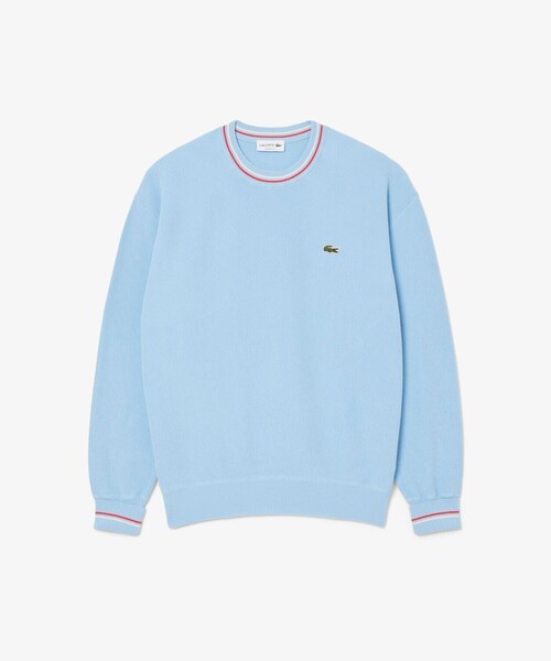 ナチュラルな風合いが心地よいコットンニットセーター・シンプルなデザインに映える配色仕立てのリブニットステッチ・折り返して着用できる長めのカフス・適度にゆとりを持たせたリラックスフィットシルエットRelax Fit