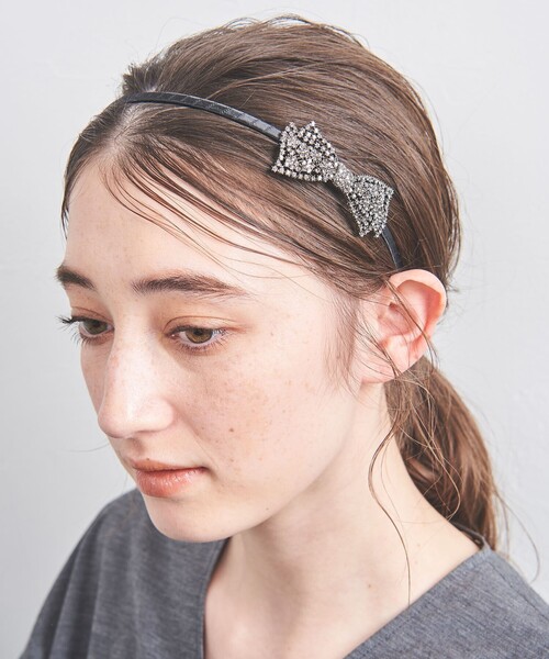 細やかなビジューを施したリボンモチーフがフェミニンなヘッドバンド ■デザイン 煌めくビジューが顔周りを華やかに仕上げ、フォーマルシーンにはもちろん、Tシャツなど日常のコーディネートもアップデートしてくれる一品。 軽やかな付け心地の細身のバンドは華奢な雰囲気を醸し出します。 【注意事項】 ※商品を使用前に、タグ等に記載されている「取り扱い上の注意書き」、「洗濯表示」を必ずご確認ください。 ※商品画像は、光の当たり具合やパソコンなどの閲覧環境により、実際の色味と異なって見える場合がございます。あらかじめご了承ください。 ※商品の色味の目安は、商品単体の画像をご参照ください。 店舗へお問い合わせの際は、全国のUNITED ARROWS各店舗まで下記の品名/品番をお申し付けください。 品名:UA PAVE/BOW HD/BAND 品番:17346991491