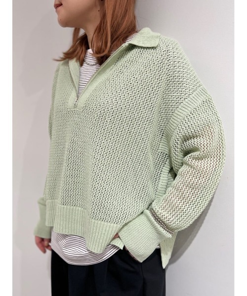 表情のあるメッシュ編みのハーフジップニット【デザインのポイント】メッシュの編地が特徴的なスキッパーデザインのニットプルオーバー。ジップ開きがポイントです。ゆったりとしたサイズでリラックス感があります。編地の特徴で着用すると着丈が5cmほど伸びます。【素材のポイント】テープ状の糸で編み立てているので凸凹感が加わり表情のある編地になっています。さらっとしたタッチで肌離れ感があります。【おすすめコーディネート】クリーンなカラー展開と程よく抜け感のあるメッシュ素材で、シンプルなボトムに合わせていただくだけでシーズンムードを高めてくれるような一枚。Tシャツやタンクトップなどインナー次第でロングシーズン活躍してくれるところも魅力です。【お買いものをよりお楽しみいただく為に】■商品のお気に入り登録再入荷・残り1点・セールの通知を受け取ることができます。■ブランドのお気に入り登録新商品・再入荷/タイムセールやクーポンなどのブランドの情報を受け取ることができます。-------------------------------------------【human woman】1998年よりスタートした”フレンチトラッド”をベースにした大人な女性のためのカジュアルブランド。素材や縫製にもこだわってつくられた上質な日常着は、長い時間大切にお使いいただけるようにお作りしています。約20年の歴史の中で、「数年着続けても安心感があるお洋服」と多くの方に高いクオリティを認められてきました。ベーシックなアイテムにさりげなく加えたトレンド感で、「私らしいカジュアルスタイル」を見つけてみませんか。「カジュアルが好き」「少しだけトレンドも取り入れたい」「大切に着たい」「私らしくいたい」そんな思いをかなえるお洋服をhuman womanでは提案しています。-------------------------------------------