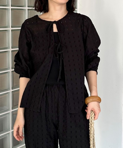 さりげない抜け感が生まれるコットンレースブラウス 【point】 ・細かなカットワークレースで大人が着られる甘すぎないデザイン ・前後2wayでスタイリングや気分によって選べます ・デニムとの相性は抜群です! ・夏の羽織としても活躍しそう ●同素材のパンツとセットアップで着られます 252-281-007-001 【fabric】 ・綿100%のナチュラルな素材感 ・ご自宅でのお手入れ可能 透け感:あり 裏地:なし 伸縮性:なし 光沢感:なし 生地の厚さ:普通 【注意事項】 ・画像の商品はサンプルです。 実際の商品と仕様、加工が若干異なる場合があります。 ・サイズ表記はあくまで目安となります。 ・取り扱いについては、商品についている品質表示でご確認ください。 ・照明の関係により、実際より明るく見える場合がございます。またパソコンなどの環境により、製品と画像のカラーが若干異なる場合がございますので、予めご了承くださいませ。 ■お気に入り登録がオススメです!■ 《商品のお気に入り登録》 カラー・サイズ選択の横の「♡」をクリックで簡単に登録できます 完売カラーの再入荷や在庫が1点になったとき、セールになったときに通知をお届けします 《ブランドのお気に入り登録》 ページ上部のブランド名の「♡ お気に入りブランドに追加」をクリックで簡単に登録できます 新商品の情報やイベントなどお得な情報をいち早くお届けします 是非、ご登録お願いします♪