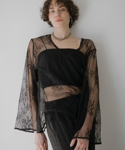 レイヤードで表情が変わるレースブラウス 【point】 ・シアー感のある華奢なレースがスタイリングにトレンド感をプラス ・袖幅、身幅ともにゆったりした作りなのでレイヤードしやすいサイズ感 ・キャミソールやタンクトップを合わせてジャケットを羽織ればオケージョンにも◎ ・ロゴやプリントのTシャツに合わせてカジュアルスタイリングのアクセントに ・レイヤード次第でロングシーズン使えます 【fabric】 ・薄手で繊細なレース素材 ・ご自宅でのお手入れ可能 透け感:あり 裏地:なし 伸縮性:あり 光沢感:なし 生地の厚さ:薄手 【注意事項】 ・画像の商品はサンプルです。 実際の商品と仕様、加工が若干異なる場合があります。 ・サイズ表記はあくまで目安となります。 ・取り扱いについては、商品についている品質表示でご確認ください。 ・照明の関係により、実際より明るく見える場合がございます。またパソコンなどの環境により、製品と画像のカラーが若干異なる場合がございますので、予めご了承くださいませ。 ■お気に入り登録がオススメです!■ 《商品のお気に入り登録》 カラー・サイズ選択の横の「♡」をクリックで簡単に登録できます 完売カラーの再入荷や在庫が1点になったとき、セールになったときに通知をお届けします 《ブランドのお気に入り登録》 ページ上部のブランド名の「♡ お気に入りブランドに追加」をクリックで簡単に登録できます 新商品の情報やイベントなどお得な情報をいち早くお届けします 是非、ご登録お願いします♪