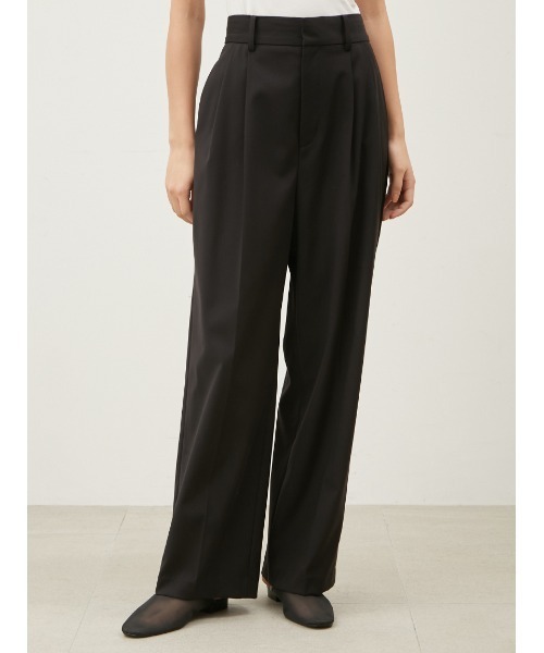 【ウエストを折り返して着るのも◎。モードなマーベルト仕様の本格ワイドパンツ】 【Design/Styling】 2タックを入れた、ハンサム&スマートなワイドテーパードパンツ。 裏地は付けず1枚仕立てで、軽やかに仕上げています。 こなれた印象のゆったりシルエットですが、タックの縦ラインと、前後に入ったセンタープレスで、すっきりと見えるデザインです。 また、ウエストの内側は、マーベルト風のメンズライクな仕様にしているのがこだわり。 ウエスト寸はあえて大きくして、折り返しても着られるようになっています。 トップスをタックインして、マーベルトを見せる着こなしは、大人ならではのスタイリッシュさです。 ベルトの内側とポケットの袋布は白の配色デザインなので、折り返した時にも映えます。 【Fabric】 本格的なメンズパンツのディテールを取り入れながらも、ソフトで落ち感のある素材なので、女性らしい上品さが楽しめます。 カラーは3色をご用意。優しい印象の<アイボリー>、シーンを選ばず合わせやすい<モカ>、クールなかっこよさがたっぷりの<ブラック>で展開しています。 ※照明の関係により、実際よりも色味が違って見える場合があります。 またパソコン・スマートフォンなどの環境により、若干製品と画像のカラーが異なる場合もございます。予めご了承ください。 商品の色味は、商品単品画像をご参照下さい。 ※商品画像はサンプルのため、色味やサイズ等の仕様に変更がある場合がございますので、予めご了承ください。