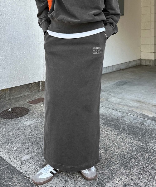 ANMEオリジナル3段ロゴ裏毛シリーズに新作《ピグメント加工》タイトスカートが入荷しました。左ポケット横にレイアウトされたコンセプトは、ANOTHERNEW MYESSENTIALSブランドを象徴するオリジナルロゴです。さらっとしたコットンの肌ざわりと、薄すぎず厚すぎず、程よい生地感が快適な裏毛スウェット素材を採用。特殊な染色を施し、色落ちしたようなヴィンテージ感のある風合いがカジュアルでこなれ感たっぷりなピグメント加工。程よくフィットしながらも体のラインを拾いにくいサイズ感と、しっかりと丈があるシルエットに仕上げました。楽ちんなゴム仕様のウエストは、調節可能なヒモ付きデザイン。便利なサイドポケットとバックポケット付き。トップスを選ばずコーデが楽しめる、こなれカジュアルなアイテムです。[同素材の展開アイテム]※セットアップで着用可能・ピグメント刺繍ロゴ入り裏毛スウェットトップス(商品番号:2600067)※ピグメント加工をしている為、染色の性質上、色移りする可能性がございます。同系色で合わせたコーデがオススメです。また、サイズに多少のバラツキがございますのでご了承の上、お買い求めください。※お洗濯について染料による色移りを防ぐため、色味の近い物と一緒に洗っていただくのがオススメです。※裏地なし※撮影時のライティング、ご覧になっているモニター・PC環境により実際の商品と色味が異なって見える場合がございます。ご了承の上お買い求め下さい。素材:綿100%≪備考≫伸縮性:あり透け感:なし生地の厚さ:やや厚手肌ざわり:さらっとしているその他:裏毛・ピグメント加工生産地:中国洗濯機:可 ドライクリーニング:不可 ウェットクリーニング:可ANME アンメ春 夏 春夏 夏服 春服秋 冬 秋冬 秋服 冬服ナロースカート トレーナー