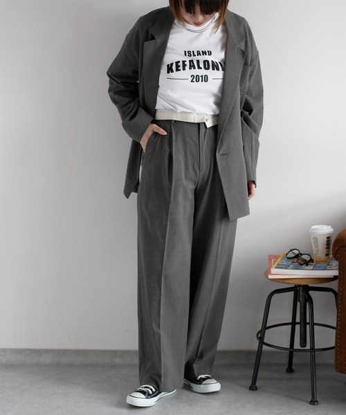 〈cepoが提案するカジュアルスーツスタイル♪〉 スラブコットンを使用したツータックワイドトラウザー。 同素材・カラーのジャケットで合わせれば、春夏に最適な大人カジュアルセットアップの完成です! ◇Point◇ 生地にスラブ糸を織り込み、表面が凹凸しており肌ざわりがやわらかいのが特徴です。 汗ばむ季節にも肌にまとわりつきにくく、かちっとしすぎないラフでナチュラルな風合いがあります。 シルエットはワイドテーパード。 ウエスト部分はタキシードで使われるカマーバンドをイメージした作り。 そのまま着用するとドレッシーな雰囲気に、生地を折り返すとカジュアルなチノパン風に。 トップスをインするときは生地折り返しがおすすめです。 さらにウエストバックゴム仕様で着脱も楽ちんです♪ 同素材・同カラーのテーラードダブルジャケットも展開中です。(CCB-0434) かっちりしすぎない、ラフなスーツスタイルをお楽しみください♪ ◇Material◇ スラブコットン×レーヨンの混紡素材。 色落ちが少なく、光に透かすと絣(かすり)のようなナチュラルな模様が浮かび上がるのが特徴です。 ウエストバックゴム仕様で、スペック表のウエスト数字より+8cmほど伸びます。 ※透け感はありません。 ◇Coordinate◇ cepoが提案するセットアップシリーズ! 肩ひじ張らないラフなスーツをお探しの方にはうってつけです◎。 もちろん単体でも使いやすいスラックスなので、春はブラウスやスウェットで、夏はTシャツをインしてラフなトラッドスタイルをお楽しみください♪ パンプス・ヒールを履いてのビジネスカジュアルもおすすめです! ※照明や天候により実際の色味と異なって見える場合がございます。ご了承くださいませ。 【キーワード】 #Y2K#20代#30代#40代#50代 #入学式#入園式#卒業式#卒園式#新生活#通勤#ノームコア