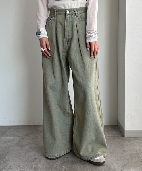 【オールシーズン使える!さりげないタックがアクセントのデニムが登場!!】 古着のような加工感に絶妙なカラーが今季らしい、 ヴィンテージ感あるデニムです♪ ワイドなシルエットでダボっと今っぽく着用していただけます。 ウエストにタックが入っているため、カジュアルながらきれいなシルエットで着用していただけます。 シーズン問わず着用できるのも嬉しいポイント。 履くだけでコーデ映えする今季注目のアイテムです! 古着ライクはもちろん、キレイめコーデにも着用いただけます◎ ※加工に特長のあるアイテムになっております。 色落ち、色移りの可能性のあるアイテムになりますので 洗濯表示に合わせたお手入れ方法をお願いいたします。 --------------------------------------- 生地の厚さ:普通 透け感:なし 裏地:なし 伸縮性:なし ポケット:あり ファスナー:あり --------------------------------------- ※サイトに表示されておりますカラー表記とお届け商品についておりますタグのカラー名が異なる場合がございますが、 実際の商品のカラーは画像と相違ございません。 ※ご覧のモニター環境や撮影環境により実際の商品と多少色味が異なって見える場合がございます。 ご理解の程よろしくお願いいたします。 【お買い物をよりお楽しみいただく為に♪】 ▼商品のお気に入り登録をおすすめします ♡をクリック! 完売カラーの再入荷や、ラスト1点の通知、 セールの際の通知を受ける事ができます。 ブランドのお気に入り登録も ご一緒にお願い致します。
