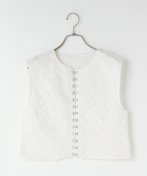 ■デザイン ハンドスモッキングというテクニックで、立体的な柄を身頃全体的に施したクラフトアイテムです。 杉綾テープにハトメ止めした前中心のホックもデザインポイント。 ■素材 程よい張り感の有るキャンブリックと呼ばれる平織りの素材を使用しています。 ※キャンブリック 薄手ながら目がしっかり詰まっているので扱いやすい、しなやかな綿生地です。 ■洗濯 手洗い 【yuw】 やわらかさと、生きる。 カジュアルだけど、くだけすぎず、優しい雰囲気なのに、 凛としている しなやかさとかっこよさのバランスが、ちょうどいいが、実はとってもむずかしい。 このむずかしいバランスをさりげなく整えて、すっと自分のものに取り入れてしまう・・・ そんな大人の女性の心地よさを、結う。 やわらかないい風が吹いています。 【気になる商品は「お気に入り」登録を】 ハートマークをクリックし、お好きなカラーを選んでお気に入りに登録すると 在庫残り僅かの通知、再入荷通知などの情報を受け取ることができます。