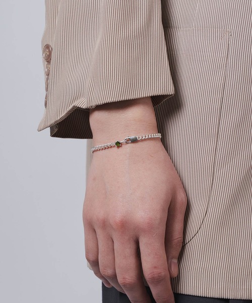 SILVER925キヘイチェーンに一粒宝石をあしらったブレスレット。【天然石】 blue:ロンドンブルートパーズ green:クロムダイオプサイド orange:シトリン silver:パイライトSIZESPECS長さ:17cm/幅:3.5mmM長さ:18cm/幅:3.5mm