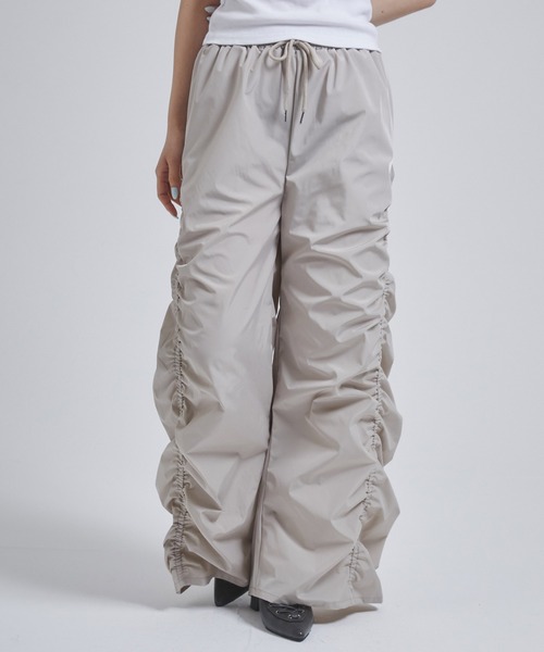 ■ポイントたっぷりギャザーが入ったらくちんパンツが登場!■ディティールウエストがゴムでストレスフリーで履けるナイロンパンツ。サイドにギャザーが施されていることで立体感がうまれ、デザイン性のあるパンツになっています。ワイドシルエットなので脚のラインをカバーし、スタイルアップも期待できます。分厚過ぎない生地の為春から秋まで長く着用出来ます。■スタイリングパンツ自体にボリュームがあるので、ショート丈やコンパクトなトップスで合わせるのがおすすめです。▼商品のお気に入り登録完売カラーの再入荷通知や、ラスト1点の通知、セールの通知など商品の情報をいち早く受け取ることが出来ます。▼ブランドのお気に入り登録 新商品や再入荷等、いち早くブランドのお得な情報を受け取ることが出来ます。