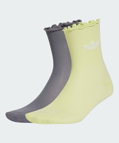【アディダス公式ショップ】波打つラッフルと透け感のある素材が特徴のアディダス クルーソックス。この軽くて遊び心溢れるアディダスソックスは、今のワードローブに少し個性をプラスできるアクセサリー。ちょっと透け感のある素材がソフトで繊細なイメージを与える、後ろのダブルラッフルの飾りがスタイリッシュなアクセントになったソックス。スニーカーからヒールまで、さまざまなシューズにマッチする、シンプルなのにコーディネート全体を変えてくれるデザイン。商品の特徴●クルー丈●ナイロン95% / ポリウレタン5%●2足組●用途:アスレジャー、スポーツミックス、通勤通学、部活 ●スポーツソックス、リブソックス●商品番号:JD5623 (ホワイト×ブラック)JD5624 (グレー)KD0964 (ピンク)※対応サイズをご確認のうえご購入ください。S:22-24cmM:25-27cmL:28-30cmXL:30-31cmkids-XXL(KXXL):19-21cm