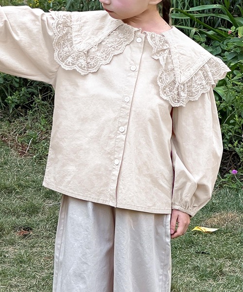 襟元にあしらわれた華やかなレースが特徴的なキッズブラウス。上品で可愛らしいデザインが特別な印象を与え、フォーマルシーンから日常まで幅広く活躍します。シンプルなボタン仕様で着脱がしやすく、柔らかなカラーリングがどんなボトムスとも相性抜群です。柔らかく通気性に優れた綿素材を使用し、デリケートな肌にも安心で、長時間の着用でも快適な着心地。季節を問わず使える軽やかな質感も魅力です。スカートやショートパンツと合わせると、よりガーリーな印象に。デニムやシンプルなパンツと合わせればカジュアルシーンにも活躍。季節に合わせてカーディガンやジャケットをプラスすることで、さらにコーディネートの幅が広がります。お子様のスタイルを一層引き立てる万能な一着です。