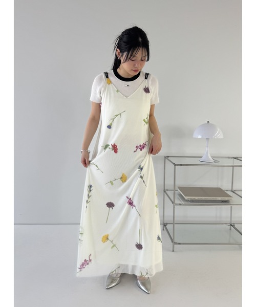 大柄プリントのチュール素材が魅力的なキャミソールワンピース。存在感のあるデザインで、特別な日のおしゃれなアイテムとして活躍します。■Point・大柄プリントチュール素材:華やかなプリントが視線を引き、デザイン全体にインパクトを与える一枚。・モード感のある合皮肩紐:肩紐に使用された合皮素材が、モードで洗練された印象をプラス。・深めのVネック:抜け感のあるVネックが顔周りをすっきりと見せ、女性らしさを引き立てます。・Aラインシルエット:身体のラインを拾わず、リラックスした着心地でありながら、エレガントな印象に仕上がるAラインデザイン。■Coordination・カジュアルダウン:デニムジャケットやシンプルなサンダルを合わせて、リラックスした日常スタイルに。・フォーマルコーデ:ハイヒールやミニバッグを合わせて、特別な日のドレスアップスタイルに。・レイヤードスタイル:長袖トップスやタートルネックと合わせたレイヤードコーディネートで、季節感を楽しめます。華やかなプリントとモード感を兼ね備えた、このワンピースで印象的なスタイリングを楽しんでください。※当商品は機械による生産の過程上、どうしても"生地を織る際の糸の継ぎ目"や多少の"ほつれ"、他繊維の"混紡"、また、形やサイズや柄に多少の"誤差"が生じる場合がございます。※サイズは、実寸サイズを測っているため多少誤差がでる場合があります。製造工程の関係上、各採寸箇所実寸(平置き)より【約-3cm~+3cm】程度は誤差の許容範囲とさせて頂いておりますので、予めご了承くださいませ。※メーカーより密封状態で入庫し、検品時に再度袋詰めを行っておりますが、素材により染料等の臭いが強い場合がございます。※発送上の状態によって商品がシワになる場合がございます。※商品により色落ち・色移りがある場合がございますので、品質表示をご確認の上、お取り扱いにご注意くださいませ。【伸縮性】あり【透け感】表地にあり