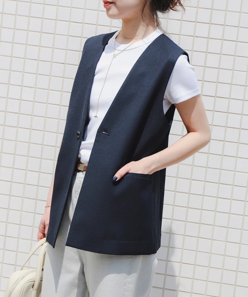 洗練されたスタイルに導く ■デザイン 大人な夏スタイルに欠かせないジレが登場。ノーカラーですっきりとした印象なのでオンオフ着用いただけます。 ■コーディネート 春先はロンTやシャツの上から、夏場にはキャミソールなどでヘルシーな雰囲気でのレイヤードがおすすめです。 ■サイズ キレイめにもカジュアルにも合わせやすいオーバー過ぎないちょうど良いサイズ感。 ■素材 さらりとしたドライギャバジンを使用。 ◆同素材のジャケットがございます。 品番:93-16-0132-462 【GREY】Model:H167 B81 W61 H87 Size:M 【NAVY】Model:H164 B76 W60 H89 Size:M ※光の当たり具合やパソコンなどの閲覧環境によって、実際の色味と異なって見える場合がございます。予めご了承ください。 ※商品の色味は商品単体で撮影した画像をご参照ください。 ◆お気に入り登録のおすすめ◆ 気になる商品には「お気に入り」登録がおすすめです! 登録していただくと再入荷のお知らせやセール通知など、商品の最新情報が届きます。またマイページでいつでも確認が可能になります。 お得な情報が届くこともありますので、是非ご活用ください。 オフィスカジュアル オフィススタイル お仕事 きれいめ