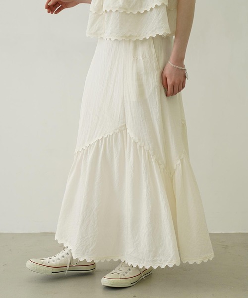 程よいティアードが上品な印象のロングスカート 程よくフレアー感のあるティアードスカート。 ギャザーとフレアーで形を出し、歩くとふわりとガーリーなシルエットを演出してくれます。 腰回りは、スッキリとスタイルよく見えるように仕上げています。 ポケット付き。 ・透け感:なし ・伸縮性:なし ・生地の厚さ:普通 ・裏地:あり 【MILKFED.(ミルクフェド)】 【取り扱い注意事項】 ・アテンションタグ・洗濯表示を必ずご確認の上、ご使用下さい。 ・画像の商品は光の照射や角度により、実物と色味が異なる場合がございます。 また表示のサイズ感と実物は若干異なる場合もございますので、予めご了承ください。 ・商品の色味の目安は、商品単体の画像をご参照ください。 ・画像の商品はサンプルとなります。実際の商品と色味、仕様、加工、サイズ、素材等が若干異なる場合がございます。 ・予約商品など一部商品につきましては、生産の都合上、お届け時期が前後する場合がございます。 《お気に入り登録》のオススメ! ▼商品のお気に入り登録 再入荷通知や、残り1点の通知、セールなどの通知も受け取ることができます。 ▼ブランドのお気に入り登録 新商品や再入荷など、ショップのおすすめトピックスなどお得な情報をいち早く受け取ることができます。