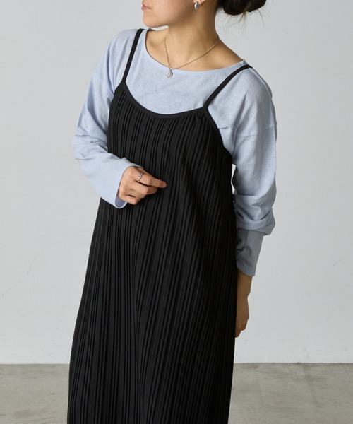 【スッキリ細見え叶うプリーツキャミワンピース】細い肩ひもでトップスの華奢見えが叶うプリーツワンピース。肩ひも部分はアジャスター付きで、長さ調整可能なのも嬉しいポイント◎縦ラインを強調してくれるプリーツデザインですっきりと見せてくれます。シンプルなシャツやブラウス、羽織りなどインナー次第で様々な雰囲気をお楽しみいただけます。【商品ポイント】・長さ調整可能なアジャスター付き・一枚でスタイルアップ効果・すとんとした落ち感がレディライクな雰囲気に◎----------------------------------------------------■商品特徴洗濯方法:手洗い可裏地:なし透け感:なし伸縮性:ややあり光沢感:なし生地の厚さ:ふつう----------------------------------------------------■素材ポリエステル96%, ポリウレタン4%----------------------------------------------------※着用、お取り扱いの際は、商品についている品質表示とアテンションタグを必ずご確認下さい。※商品タグに記載されている商品名がWEBでの表記名と異なる場合があります。※画像の商品はサンプルです。実際の商品と仕様、加工、サイズが若干異なる場合がございます。 ※照明の関係により、実際よりもやや明るく見える場合がございます。またパソコンなどの環境により、若干製品と画像のカラーが異なる場合もございます。予めご了承くださいませ。【お気に入り登録】してお得な情報をCHECK!!・「商品のお気に入り登録」で再入荷通知や、ラストの通知、セール通知も受け取ることができます。・「ブランドのお気に入り登録」で新商品や再入荷など、お得な情報を受け取ることができます。