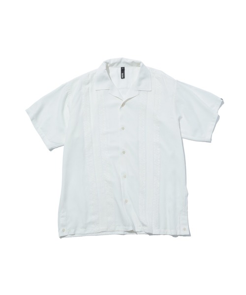 ・キューバシャツをイメージした半袖シャツ・両胸にはプリーツとバンダナ柄を刺繍したデザイン・左袖にSILASロゴのピスネームを配置・これからの時期(春夏)にサラッと着用可能なシャツです【詳細】・透け感:あり・伸縮性:ややあり・生地の厚さ:普通・裏地:なし・シルエット:ベーシック※ホワイトで計測しています。【SILAS(サイラス)】1998年、イースト・ロンドンにて”SLAM CITY SKATES”のオリジナルブランドである”Holmes”に携わっていた、ラッセル・ウォーターマン/ Russell Watermanとソフィア・マリア・プランテラ/ Sofia Maria Pranteraの2人が独立し立ち上げたロンドン発のストリートブランド。「イーストロンドンストリート」と「ストリートシック」をコンセプトに、上品な雰囲気を持つストリートウェアを提案。【商品のお気に入り登録】残り1点や再入荷、セールなどの通知を受け取ることができます。【お気に入りショップに追加】新作アイテムや再入荷、クーポンなどお得な情報をいち早く受け取ることができます。【取り扱い注意事項】・アテンションタグ・洗濯表示を必ずご確認の上、ご使用下さい。・画像の商品は光の照射や角度により、実物と色味が異なる場合がございます。・表示のサイズ感と実物は若干異なる場合もございますので、予めご了承ください。・商品の色味の目安は、商品単体の画像をご参照ください。・画像の商品はサンプルとなります。実際の商品と色味、仕様、加工、サイズ、素材等が若干異なる場合がございます。・予約商品など一部商品につきましては、生産の都合上、お届け時期が前後する場合がございます。