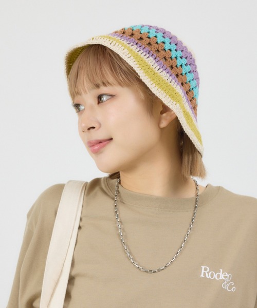 ■ポイントオリジナルのボーダー柄が可愛い、クロシェニットHAT。シンプルなスタイリングにプラスするだけで、こなれ感のある旬な着こなしになります。■ディティールクロシェ編みなので、通気性もあり気温の高い日でもおしゃれのワンポイントとして使えます。■スタイリングカジュアルなデザインで、普段使いはもちろん、アウトドアやアクティブなシーンにもぴったり。一見派手な印象に見えがちですが、Tシャツにデニムなどのシンプルなスタイリングにばっちり合うアイテムです。<br>ファッションに遊び心をプラスする、おしゃれで機能的なアイテムです。■生地少しシャリ感のあるコットン(麻混)ニット素材■透け感:なし■光沢感:なし■伸縮性:あり■裏 地:なし▼商品のお気に入り登録お気に入りアイテムの再入荷・在庫1点などの通知を受け取ることができます。▼ブランドのお気に入り登録新作アイテムの入荷や人気アイテムの再入荷、おすすめトピックスなど、いち早くブランドの情報を受け取ることができます。[注意事項]※画像の商品はサンプルです。実際の商品と仕様、加工が若干異なる場合があります。※商品画像の色味は、屋外や屋内の光の照射や角度により実物と色味が異なる場合がございます。※着用、お取り扱いの際は、アテンションタグをご確認ください。※弊社管理上のカラーを表記しており、タグのカラー表記と異なる記載となっている場合がございます。SPRING & SUMMER ( 春服 / 夏服 )※こちらの商品は、RODEO CROWNS WIDE BOWL 独自の採寸方法となっています。本サイトのサイズガイドと採寸方法が異なる場合がありますのでご了承ください。