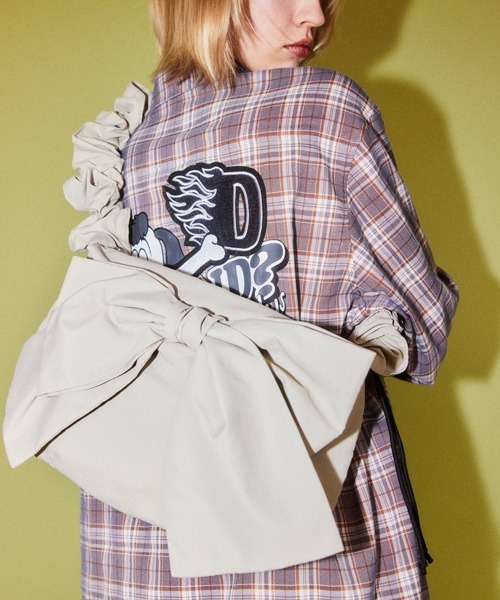 大きなリボンが目を惹くショルダーバッグ●ギャザーショルダー部分がコーディネートのアクセントに●ナイロンタフタ素材を使用し軽やかに仕上げました●ショルダー部分はドローコードで調節が可能●デイリーに使いやすいサイズ感で実用性もありながら、スタイリングにプラスするだけでポイントに●タウンユースにはもちろん、コンサートなどのイベント時にも最適■仕様・ショルダーバッグ・ショルダー調節可能・メイン開閉: ファスナー・内側:ファスナーポケット×1・ライトベージュ、ブラック/黒の2色展開#ガーリー#モード#リボン#デイリーユース#イベント#コンサート#キャンスパ#キャンスト#CND●Candy Stripper/キャンディストリッパー●-BRAND CONCEPT-NO RULE, NO GENRE, NO AGE年齢や性別にとらわれず、自由に自分を表現出来る服【お買い物をもっとお楽しみ頂くために】▼商品のお気に入り登録▼完売カラーの再入荷通知や、ラスト1点通知、プライスダウンしたセール通知も受け取れる♪▼ブランドのお気に入り登録▼新作や再入荷等、いち早くブランドのお得な情報が受け取れる♪