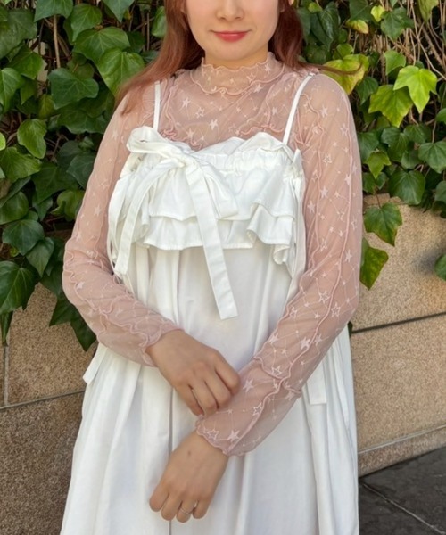 伸縮性のある星柄のストレッチチュールを使用したシースルートップス。スタイリッシュなハイネックデザイン。身頃のランジェリーライクなメロー切り替えで女性らしさをプラス。程よくタイトなシルエットで1枚ではもちろん、レイヤードアイテムとしても最適。春のアクセントカラーに最適なピンク、ジャンルレスで活躍するオフホワイト・ブラックの3色をご用意。スタイリングに一捻り加えたい時にぴったりです。・オフホワイト/白、ピンク、ブラック/黒の3色展開【サイズ展開】・FREE(フリーサイズ)#カジュアル#ガーリー#星#シースルー#チュール#メロー#インナー#レイヤード#キャンスト#キャンスパ#CND●Candy Stripper/キャンディストリッパー●-BRAND CONCEPT-NO RULE, NO GENRE, NO AGE年齢や性別にとらわれず、自由に自分を表現出来る服【お買い物をもっとお楽しみ頂くために】▼商品のお気に入り登録▼完売カラーの再入荷通知や、ラスト1点通知、プライスダウンしたセール通知も受け取れる♪▼ブランドのお気に入り登録▼新作や再入荷等、いち早くブランドのお得な情報が受け取れる♪
