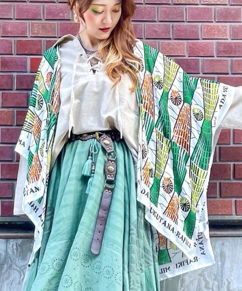 ◆◇ RAFIKI ◇◆ アフリカン柄で個性をプラス! スワヒリ語で『友達』という意味のRAFIKI(ラフィキ)シリーズ。 東アフリカで広く愛されているキテンゲ柄をリデザイン。 大きくプリントされたアフリカン柄がコーデのポイントになるパレオストール。 春~夏の羽織りにもぴったりな薄手で涼やかな素材感。 野外フェスやお祭り、リゾートシーンなどでひときわ目を惹くデザインです。 男女問わずユニセックスでご着用いただけます。 \様々な着方が楽しめる3WAY/ ●両サイドのボタンを留めて、腕を通してカーディガンに◎ ●首元に巻いてストールとして◎ ●腰に巻いてパレオとしてもお使いいただけます。 ・UVカット加工がほどこされていますので、デイリーユースはもちろん、レジャーやアウトドアなど様々なシーンで大活躍◎ ・お揃いの柄の巾着ポーチ付き。折りたたんで収納できるので、持ち運びにも便利です。 ※こちらの商品は1点1点職人による手作りとなります。その為、生地の取り方により柄の配置や形・色合いなど若干異なる場合がございます。あらかじめご了承ください。 ※屋外での撮影画像は、光の当たり具合で色味・カラーが違って見える場合がございます。商品のカラーは、スタジオ撮影の画像をご参照ください。 ※UVカット加工の効果はお洗濯のたびに薄くなります。天日干しにより効果が薄くなる可能性もありますので陰干しされることをおすすめ致します。 Amina Collection Co.,LTD.