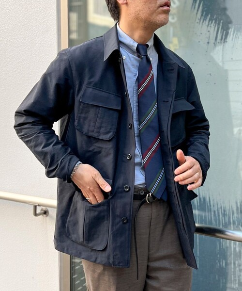 定番ミリタリージャケットのディテールを キレイめに落とし込んだ機能系シャツジャケット ◆素材 ・引裂き強度を持つナイロンリップストップ ・ナチュラルなシワ加工 ・適度な光沢感で上品な雰囲気 ・撥水/防シワ/縦ストレッチ/ウォッシャブル ◆デザイン ・アメリカ軍ジャングルファティーグ型 ・特徴的な4つのマチありフラップポケット ・比翼付きのフライフロントボタン ・シャツ以上ジャケット未満 ・ややゆったりとしたシルエット ◆スタイリング ・Tシャツの上に羽織るだけで簡単に決まる ・デニムを始め、スラックスライクなパンツとの相性も◎ ・季節の変わり目や冷房対策でもきちんと決まる ※洗濯機洗い可(弱/ネット使用) ー・ー・ー・ー・ー・ー・ー・ー・ー・ー・ー 透け感:なし 裏地:なし 伸縮性:あり 光沢感:ややあり 生地の厚さ:普通 ー・ー・ー・ー・ー・ー・ー・ー・ー・ー・ー ★気になるアイテムは【お気に入り登録】がオススメです! 入荷情報やクーポン、セール情報が通知されるようになります。 【お取扱い上のご注意】 末永くご愛用頂くために、アテンションタグを必ずご確認の上、着用又はお取り扱い下さい。 ※店頭及び屋外での撮影画像は、光の当たり具合で色味が違って見える場合があります。商品の色味は、スタジオ撮影の画像をご参照下さい。 ※商品画像に関しては出来る限り忠実に表示出来るよう努めておりますが、お客様がご利用のモニターの設定及び特性により、実際の商品と比較し色味に若干の誤差が生じる場合があります。 ※画像の商品はサンプルとなりますので実際の商品と仕様、加工、サイズが若干異なる場合がございます。 ※製品洗い加工の商品は、多少の歪み、シワなどが見られたり、風合いやサイズ等が1枚1枚異なります。汗や雨等で濡れた時や、摩擦により色落ちし、他の衣料を汚すことがありますので(特に濃色のもの)ご注意ください。