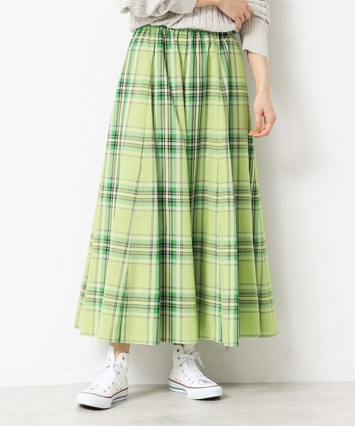 【デザインポイント】毎シーズン大人気!映えチェック柄スカート。軽やかな揺れが印象的です。広がりすぎない適度なフレアが上品にスッキリと見せます。ウエスト部分は総ゴムの楽ちん仕様で快適な穿き心地。ガーゼ調の生地が軽やかです。今年は着丈が長くなりました。【スタイリングポイント】裏地がついていますので、トップスとの素材コントラストを楽しみながら3シーズン着用できます。【素材ポイント】ガーゼのような軽やかで涼し気で適度にコシがある、サラッと軽めの生地感です。【仕様】・ポケットなし・ウエスト総ゴム・裏地あり※照明の関係により、実際よりも色味が違って見える場合があります。また、パソコン・スマートフォンなどの環境により、若干製品と画像のカラーが異なる場合もございます。モデル情報:身長168cm B76 W58 H86 着用サイズ:02(M)店舗へのお問い合わせ商品番号:F58-72044●製品寸法:00(XS):W58~68cm H88cm 総丈85cm01(S):W60~70cm H92cm 総丈87cm02(M):W62~72cm H96cm 総丈89cm03(L):W64~74cm H100cm 総丈91cm備考: