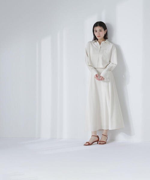 <petit size>通常のSサイズやMサイズから着丈などの長さを短くリサイズし、150cm Aroundの低身長さんにもバランスよく着用いただけるサイズに仕上げています。限定店舗・official site・ZOZOのみの限定展開です。PSでのサイズ表記になっています。 <お出かけ・デイリーにおすすめ> 肩の落ちた抜け感のあるクロップド丈のシャツとAラインスカートの組み合わせがハンサムレディなSETアイテム。シャツはコンパクトな丈感ですが、ディテールはベーシックなのでクセがなく、使いやすいデザインです。Aラインスカートはウエストをすっきりさせながら、腰まわりのラインを拾いすぎず、程よいフレア感ではきやすい一枚。 <素材> クリアな面でハリと落ち感のバランスのいい合繊素材を使用。淡色アイボリーのシャツはやや透け感はあります。 <詳細> 仕様・シャツは前ボタン、スカートは左ファスナー 裏地・シャツはなし、スカートはあり 透け感・シャツはややあり、スカートはなし / 光沢・なし / 伸縮性・なし 生地の厚さ・普通 ※モデルの着用画像の場合、光の当たり具合により、実際の色味と異なって見えることがございます。色味は、商品単体の画像をご参照ください。 【ZOZOでのお買い物をもっと楽しむために!】 ■ブランド・ショップのお気に入り登録 ・いち早く新作アイテムや限定クーポンなどのお得な情報を受け取ることができます! ■商品のお気に入り登録 ・完売商品の再入荷通知や、残り1点の通知、各種セール通知も受け取ることができ、よりお得にお買い物頂けるチャンスがあります!