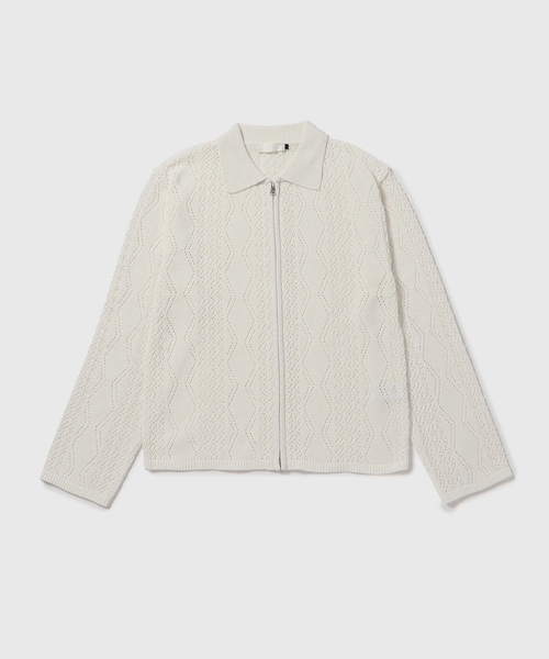 クロシェ組織が引き立つレギュラーフィットのジップアップカーディガン クロシェ組織が特徴のレギュラーフィットジップアップカーディガンです。 テンセルとリネンを混紡した糸を使用して、涼しく快適な着心地を提供します。 特有のねじれ感を持つ糸をクロシェ組織に編み込み、自然な質感を引き立てます。 ツーウェイファスナーを使用することで、実用的で無駄のないデザインが完成し、レギュラーフィットのシルエットがカジュアルでスタイリッシュに演出されます。 繊細な組織感で透け感が少なく、単独で着用するのはもちろん、インナーとレイヤードスタイルにも活用できる高い実用性を誇るカーディガンです。 レギュラーフィットのシルエット クロシェ組織編み テンセル&リネン混紡糸で涼しく快適な着心地 2WAYファスナー使用 細かい組織に過度でない透け感 単品着用&レイヤードスタイリング両方可能 【AMOMENTO/アモーメント】 2016年にMK LEE(エムケー リー)により設立された「AMOMENTO」は、控えめなデザインを通して時代を超えたクラシックや、建築的に再解釈されたシルエットを提案するブランド。 コレクションは、デザイナーの個人的な感情や経験の瞬間から生み出され、 オリジナルテキスタイルの開発と洗練されたディテールに焦点を当てた、快適な着心地だけでなく、独自の美学を表現する服作りを追求しています。 私たちは、ファッションが有意義な自己表現の手段として機能することを願っています。