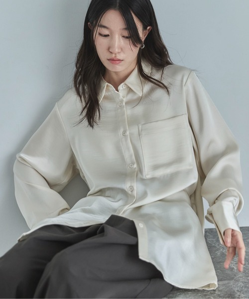 ◆Detail着るだけで大人っぽいスタイリングにアップデートしてくれるサテンシャツ。オーバーサイズでゆるっとお召しいただけますが生地の落ち感ですっきり見え◎とろみのあるしっとりとした肌当たりが病みつきになる生地を使用。光沢感があるためカジュアルからキレイめなスタイリングまで様々なシーンで大活躍してくれます。◆Fabric--------------------------------------透け感:なし(アイボリーややあり)伸縮性:なし光沢:あり生地の厚さ:★★★☆☆--------------------------------------※汗や水、摩擦により他のものに色移りすることがありますのでご注意ください。※濃色製品は色移りすることがありますので、他の物と分けて洗濯してください。※生産時期によりサイズや質感・色味に若干の個体差がみられる場合がございます。※商品画像は、光の当たり具合やパソコンなどの閲覧環境により、実際の色味と異なって見える場合がございます。予めご了承ください。※着用、お取り扱いの際は、商品についている品質表示とアテンションタグを必ずご確認ください。◆Information欲しいitemをお気に入り登録(♡マークをclick) ・お買いのがし対策…完売itemの再入荷やラスト1点の情報をお知らせ ・欲しいitemをお得にget…pricedownになったらいち早くお知らせ ・スムーズ検索…ZOZOのお気に入りアイテムページで簡単checkできるから、再検索不要♪