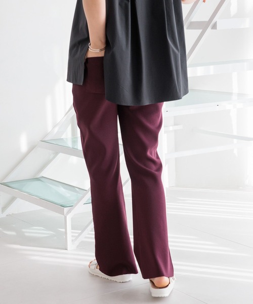 ストレスフリーな穿き心地で様々なシーンで着用できるフレアパンツ ーーー ★おすすめポイント★ [1]目の詰まったきれい見えニットパンツ [2]フレア&裾スリットで、すっきりとした足長シルエット [3]落ち感があり横張りしないリッチ感 [4]接触冷感 [5]ネイビー&ブラックは、卒業式・入学式などのセレモニーからオフィスまで対応。 ーーー [fabric] レーヨンナイロンのハイツイスト糸を使用したドライタッチなニット地。 目の詰まった編地できれい見えが叶いつつも、穿き心地はストレスフリー。 [design] トレンドのチュニック丈トップスにも合わせやすい、フレアシルエット。 裾スリットは足長効果だけでなく、様々なシューズにマッチするメリットも。 [styling] オーバーサイズTやトレンドのチュニック丈とのスタイリングに最適。 カジュアルなTシャツスタイルに、リッチな雰囲気を出来ます。 ※屋外での撮影画像は光の加減で実際の商品より明るく見えたり、風合いが異なって見える場合がございます。 商品の色味はスタジオ撮影の画像を参考にして下さい。 ------------------------------------- ≪お買い物をよりお楽しみいただくために≫ ◆商品のお気に入り登録(ハートマークをクリック) 完売カラーの再入荷通知や、完売間近の通知、セールの通知も受けることができます。 ◆ブランドのお気に入り登録 新商品や再入荷など、いち早くブランドのお得な情報を受け取ることができます。 -------------------------------------