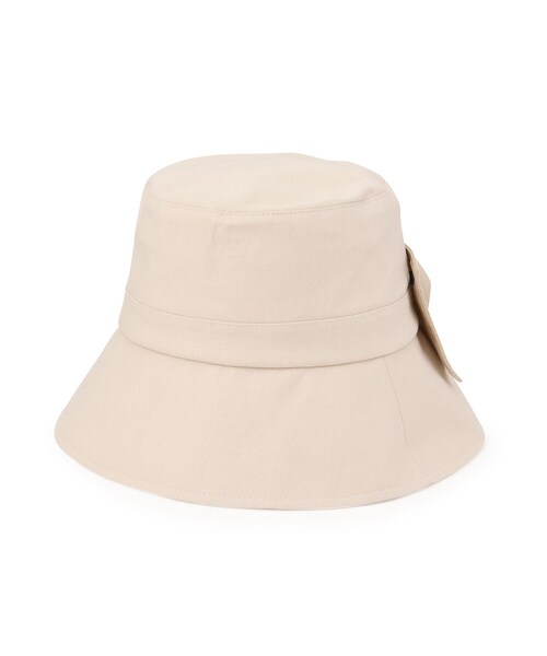 つばが広めで、上品なデザインのリボンをあしらったバケットハット。【デザイン】すっきりとしたつばのデザインのバケットハット。後ろについている幅広のリボンがポイントです。さらっとした素材感でUVカット機能を備えており、強い日差しから守ってくれます。帽子内側の汗止めテープの裏に面ファスナーを縫い付けており、サイズ調整可能なのも嬉しいアイテム。リボンの端についているスナップボタンを外し、もう片方のリボンの端のボタンと合わせるとコンパクトに畳むことができます。必要のない時にバッグの中でかさばらないもの嬉しいポイントです。※この製品は、太陽光線中の紫外線(UV)を通しにくくします。この効果は永久的ではありません。※照明の関係により、実際よりも色味が違って見える場合があります。また、パソコン・スマートフォンなどの環境により、若干製品と画像のカラーが異なる場合もございます。店舗へのお問い合わせ商品番号:769-22003●製品寸法:00:内周55~58cm 高さ10.5cm つば8.5cm備考: