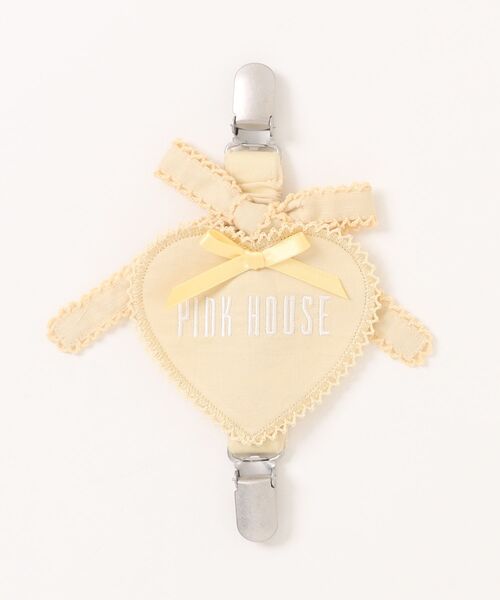 ワンピースやスカートのたくし上げなどに使えるサスペンダークリップ ピコット刺繍で縁取りしたキュートなハート型ワッペンに さらに同じくピコット刺繍で縁取りしたリボンモチーフを添えて とっても可愛らしい仕上がりに ハートワッペンのなかには PINK HOUSEのロゴ刺繍とミニサテンリボンをあしらって ロゴ刺繍はシロ、リボンはワッペンと同色にして春らしく爽やかに シロのワッペンにはアカ色のロゴ刺繍とミニリボンを添えてアクセントに お洋服と同色にしたり配色にしてみたり 単独でつけてみたり、同じ色を2個つけてみたり配色使いにしてみたり いろいろなアレンジが楽しめそうなので、ついたくさん欲しくなっちゃいそうですね♪