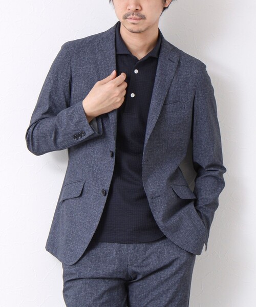 着るとすぐに感じるひんやり感とストレッチ性スマートシルエットの清涼感テーラードジャケット◆素材・ナイロンポリにプリントジャージを乗せた生地・360度方向の非常に高いストレッチ性・復元性が高くシワになりにくい・肌に触れるとすぐに分かる接触冷感◆デザイン・やや細身のスタイリッシュなシルエット・チーフポケット内布を引っ張り出すとチーフ代わりに・フロント2つボタン/裏地無し/センターベント/開き見せボタン3つ◆スタイリング・カジュアルシーンからビジネスシーンまで着用可能・シャツはもちろん、Tシャツやニットとの合わせも・単品使いはもちろん同素材のパンツ(5-0086-2-59-401)とのセットアップも※手洗い可★気になるアイテムは【お気に入り登録】がオススメです!入荷情報やクーポン、セール情報が通知されるようになります。【お取扱い上のご注意】末永くご愛用頂くために、アテンションタグを必ずご確認の上、着用又はお取り扱い下さい。※店頭及び屋外での撮影画像は、光の当たり具合で色味が違って見える場合があります。商品の色味は、スタジオ撮影の画像をご参照下さい。※商品画像に関しては出来る限り忠実に表示出来るよう努めておりますが、お客様がご利用のモニターの設定及び特性により、実際の商品と比較し色味に若干の誤差が生じる場合があります。※画像の商品はサンプルとなりますので実際の商品と仕様、加工、サイズが若干異なる場合がございます。※製品洗い加工の商品は、多少の歪み、シワなどが見られたり、風合いやサイズ等が1枚1枚異なります。汗や雨等で濡れた時や、摩擦により色落ちし、他の衣料を汚すことがありますので(特に濃色のもの)ご注意ください。