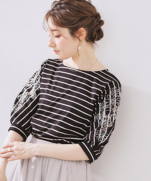 袖山にオリジナルのデイジー&リボン柄のボーラー刺繍を入れた、ドルマンシルエットのジャージトップス~POINT~初夏からの大人カジュアルな装いにおすすめの一枚です。お袖からちら見えする肌見せ感が女性らしい印象に。イン・アウト問わずどちらでも可愛く着こなしが可能です。【素材・機能】キレイ見えする60シルケット天竺を使用。バイオウォッシュで柔らかな風合いに仕上げています。接触冷感・マシンウォッシャブル・UV機能付き※この製品は、太陽光線中の紫外線(UV)を通しにくくします。この効果は永久的ではありません。※照明の関係により、実際よりも色味が違って見える場合があります。また、パソコン・スマートフォンなどの環境により、若干製品と画像のカラーが異なる場合もございます。【スタッフコメント】・saori(153 )毎年ご好評いただくドルマンシルエットのトップスです!腕まわりがほどよくゆったりしているので着やすく、全体的にスッキリした大人可愛いシルエットに!カジュアル~フェミニンテイストまで幅広くお楽しみ頂けます◎【25SS NEW ARRIVAL】【25SS NEW COLLECTION】モデル情報:身長166cm B80 W62 H86 着用サイズ:38(M)店舗へのお問い合わせ商品番号:508-12515●製品寸法:36(S):着丈56cm B105cm 裄丈52cm38(M):着丈58cm B108cm 裄丈53cm42(LL):着丈61cm B114cm 裄丈55cm備考: