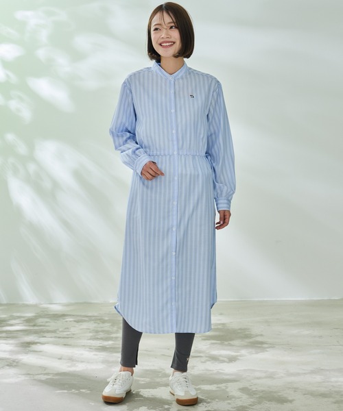 デイリーユースにぴったりの、着回し力抜群のストライプシャツワンピース。ゆったりとしたドルマンシルエットで、身体のラインを拾わず、気になる部分をさりげなくカバーしてくれます。シワになりにくいポリエステル素材を採用しているので、お手入れも簡単。ご家庭の洗濯機で洗った後、形を整えて干せば、アイロンなしでも着用できます(気になる場合は軽くアイロンをかけると、簡単にシワが取れます。)ワンピースとして1枚で着るのはもちろん、ボタンを開けて羽織りとしても着用できるので、着こなしの幅が広がります。ウエスト部分に紐がついており、絞ることでシルエットの変化も楽しめます。レギンスやデニムをレイヤードしたスタイリングもおすすめ。カジュアルにもきれいめにも着こなせる、万能アイテムです。 【素材】 透け感:やや透ける 伸縮性:ない 生地の厚さ:薄い 裏地:なし 参考カラー:73サックスブルー 【Arnold Palmer/アーノルドパーマーについて】 『家族のカタチ』『繋がるキモチ』『変わらないカチ』若い人も、夫婦も、お年寄りも、お子さまも、 世代を超えてライフスタイルに寄り添える、元気で遊び心のあるファッションを。 シンプルだけど機能的、日常をより便利に、快適に、みんながハッピーに、幸せな毎日を過ごせるように。 わたしたちは、時代を超えても『価値』のあるモノづくりを追求し続けます。 ▼商品のお気に入り登録 再入荷通知や、ラスト1点、セールの通知をお知らせ致します。 ▼ブランドお気に入り登録 新作アイテムや再入荷など、いち早くブランドの最新情報をお届け致します。