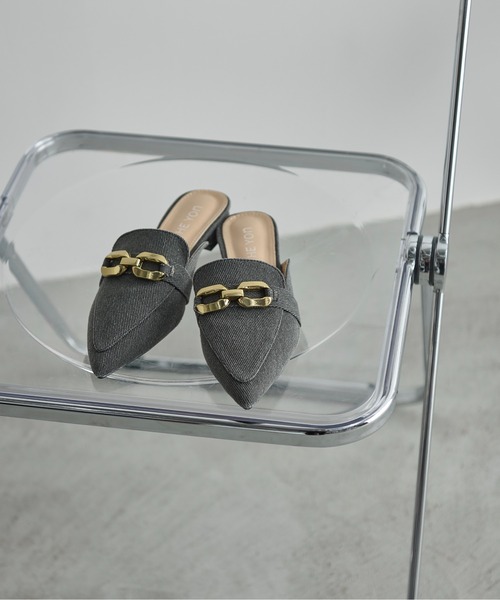THE YOn 2025 Spring Collection 素材感で新鮮な表情を 【Design】 デニムライクなボディが特徴的なローファーパンプス。 アッパーに飾ったゴールドのビットで品のある雰囲気に。 踵の開いたミュールタイプで抜けを作り、ラフに履けるデザインに仕上げました。 ローヒールなので歩きやすく長時間の外出時にも最適な一足。 【Styling Point】 きれいめスタイルの外しにも、カジュアルコーデのアクセントにも◎ 合わせやすいベーシックカラーから、差し色になるカラーまで幅広くラインナップ。 【お買い物をお楽しみいただく為に】 ▼お気に入り登録をオススメ致します。 『♡』をクリックして下さい。 ・《商品のお気に入り登録》で再入荷通知や、ラスト1点の通知、セールの際の通知も受け取ることができます。 ・《ブランドのお気に入り登録》で新作商品や再入荷など、お得な情報を受け取ることができます。 【ATTENTION】 ※画像の商品はサンプルです。 その他実際の商品と色味、仕様、加工、サイズ、素材等が若干異なる場合がございます。 ※撮影場所やお使いのモニター環境により若干お色味が異なる場合がございます。 ※製品によっては染料の特性上、湿った状態や汗をかいた状態での長時間の放置、または摩擦により、他のものへ色移りする恐れがありますので、着用時にはご注意下さい。 ※風通しがよく、湿気の少ない日の当たらない場所で保管して下さい。 ※また製品加工上、お手元に届く際に匂いが生じる場合がありますが、 ご使用を続けていく事により匂いは軽減されます。