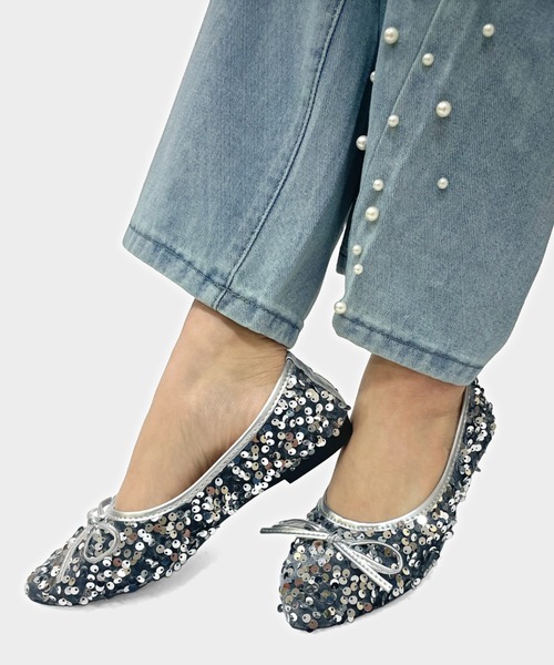 【足元の盛り上げ役に旬のスパンコールを抜擢ポインテッドトゥ スパンコールパンプス】 ◆Design ・履くだけで足元に輝きとトレンド感をもたらしてくれるスパンコールパンプス。 ・きらめくスパンコールでコーデに程よいスパイスを加えてくれます。低めヒールなので長時間歩く日にも◎ ・シンプルなポインテッドトゥパンプスに華やかなスパンコールで一気にトレンド感をアップしてくれます。 ・シルバー・ブラックのどちらも挑戦しやすいカラー展開。 ・単体だと一見派手に見えがちですが、履くとコーデになじんでくれます。 ◆Fabric ・足当たりもいい生地を使用 ・フラットで歩きやすい ◆Styling ・スパンコールデザインは存在感もありつつシンプルなので、デニムなどカジュアルなアイテムなど普段使いにはもちろん、 パーティーや結婚式などのオケージョンにも使用できて活躍シーン多様! ※商品画像は着用イメージです。光や角度により、実物と色味が異なる場合がございます。 また表示のサイズ感も実物とは若干異なる場合もございますので、予めご了承ください。 ※着用、お取り扱いの際は、商品に付いている品質表示とアテンションタグを必ずご確認ください。 ※サイズは平置き寸法で表記しております。着用により素材の重みで丈感や袖が表記より長くなる場合がございます。 ≪お買い物をよりお楽しみいただくために♪≫ ♡商品のお気に入り登録 完売カラーの再入荷通知や、完売間近の通知、セールの通知を受けることができます。 ♡ブランドのお気に入り登録