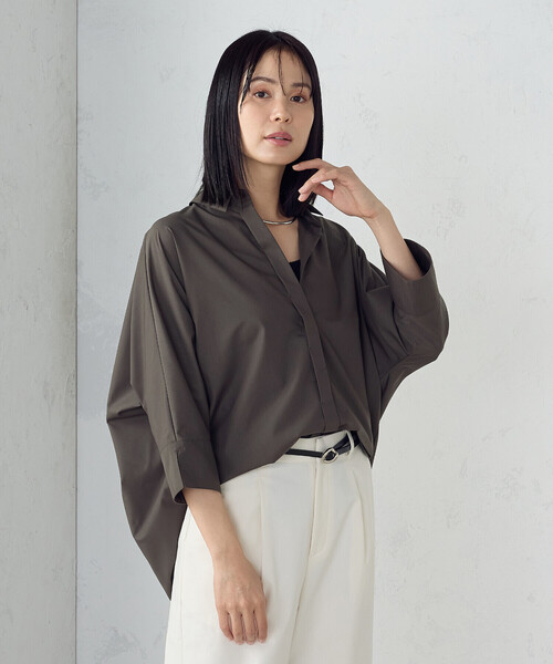 《デザイン》華奢なインナーに、ばさっと羽織りたいオーバーサイズシャツ。フロントはシンプルに仕上げた一見ベーシックなシャツながら、バックのデザインが着こなしにニュアンスをプラスします。裾にタックをとることで、羽織った際にふんわりとした形を作り、抜け感を演出。ラフに着られるオーバーサイズですが、すっきりと見えるようなバランス感にこだわりました。薄手のインナーやキャミソール等に、羽織として着用するスタイルがおすすめ。《素材》程良い張りのある風合いが特徴のポリエステルコットンブロード。さらっとしたきれいな表面感が、上品な印象です。……………………透け感:なし厚さ:普通伸縮性:なし光沢感:なし裏地:なし洗濯方法:洗濯機洗い……………………※画像の商品はサンプルとなりますので実際の商品と仕様、加工、サイズが若干異なる場合がございます。※こちらの商品はFIVE FOXes独自の採寸方法となっています。本サイトのサイズガイドと採寸方法が異なる場合がありますのでご了承ください。