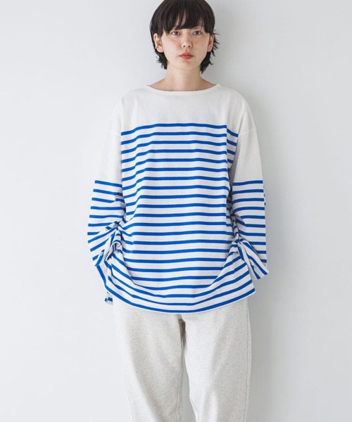 ■素材特性■USAコットンを使用したボーダー生地です。程よい厚み、ハリ感があり1枚で着やすい素材感になります。■デザイン■定番のバスクボーダーTシャツ。少し袖口を少しワイドにして、脇のスリットを深めにして抜け感をプラス。■スタイリング例■デイリーに使えるベーシックアイテム。パンツと合わせてカジュアルに着こなしたり、スカートを合わせてフェミニンに着こなしたりと様々なアイテムと合わせて着ていただけます。「今着たい」トレンド感と、「ずっと着たい」スタンダードな アイテムを提案するLOWRYS FARMがコンビニ業態との協業として、コンビニエンスストアLAWSONとコラボレーションアイテムを制作いたしました。日々多くの人が訪れ、便利な場所として生活に欠かすことのできないコンビニエンスストアで、ファッションを通して、日常に「カワイイ=幸せ」を感じてもらえたらという想いで、コラボレーションアイテムを制作しました。今回のコラボレーションアイテムはボーダー柄のロングTシャツ。男女問わず着られるユニセックスアイテムです。
