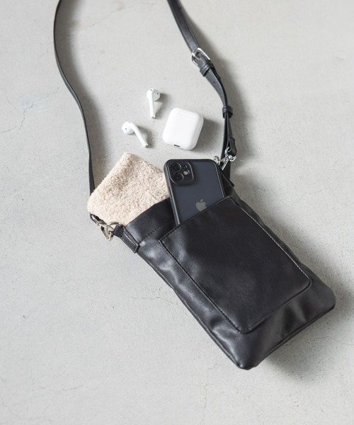 ■素材 シボ感のあるフェイクレザーを使用し、程よい柔らかさと光沢を抑えデイリーに使いやすい素材です。 ■デザイン シンプルで使い勝手の良いショルダーバッグ。 マグネット釦の開閉式で内側にはスマホにちょうどいいポケット付き。 小物や貴重品入れの小さめのお出かけバッグとしてキレイ目な印象でお使いいただけるバッグです。