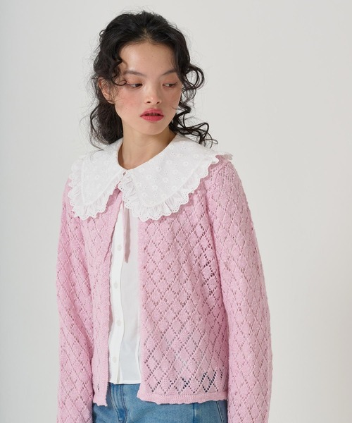 アイレットコットン生地と無地のドッキングデザインが特徴のブラウス。 コットンレースのフリルがついたビッグカラーは顔回りを華やかに。 p o i n t ・1枚での着用はもちろん、カーディガン合わせもオススメ 【お取り扱い上の御注意】 <お届け時のシワにつきまして> ページで着用している商品は撮影前に全てプレスをかけております。 その為お送りする商品は畳みジワや細かいシワがついている場合がございます。 ご了承くださいませ。 <色移り・色落ちについてのご注意点> この商品は摩擦(特に湿った状態での摩擦)や汗や雨などでぬれた時は他の衣料や下着に色が移る事がありますので、十分ご注意ください。 <お取り扱いご注意点> ・押し洗いしてください。 ・クリーニングの際は、必ずネットをご使用ください。 ・蛍光増白剤使用禁止 ・あて布使用 ・ボタン部分アイロン禁止 ・生地の特性上、多少縮むことがあります。洗濯後は、形を整えて干してください。タンブラー乾燥は、お避けください。 ・退色を防ぐため光の当たらない場所で保管してください。 ・縫い目に過度の力が加わると、縫い目が開いてしまうことがありますのでご注意ください。 こちらの商品画像は、スタイリングの雰囲気に合わせて撮影方法を変えた関係で、カットにより光の当たり具合が変わり、色味が異なって見えます。 現物のカラーは、商品画像最後の画像でご確認くださいませ。