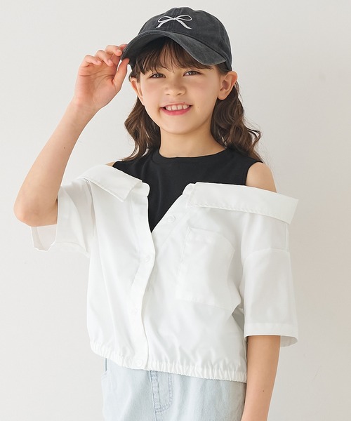 1枚でトレンド完成。タンクドッキング×オープンショルダーのキッズシャツ \26SSはブルーとライトグリーンが新色で登場!!/ ■デザイン ・タンクトップを重ねたようなドッキングデザイン ・肩あきのオープンショルダー仕様で今っぽい印象 ・シャツ素材で甘くなりすぎず大人っぽく着られる ・ウエストゴム入りでバランスの取りやすいシルエット ■素材 ・シャツ部分は軽やかでさらっとした素材感 ・タンク部分は伸縮性があり動きやすい ・異素材ドッキングでも快適な着心地 ■コーディネート ・カーゴパンツやワイドパンツでストリートMIXに ・デニム合わせでカジュアルスタイルにも◎ ・ショート丈ボトムでトレンド感アップ ・お出かけやイベントコーデにもおすすめ 伸縮性:タンク部分のみあり 透け感:ややあり 裏地:なし ポケット:あり 生地感:薄手のポリエステル生地 注意点:お洗濯方法によっては縮みや色あせの可能性あり。乾燥機等のご使用はお控え下さい。 ▼生地や素材の性質により2cm前後サイズ誤差が出る場合がございます。 ▼モデル着用写真は撮影環境により、多少実際のカラーと異なる場合がございます。 ▼色落ちの恐れがありますので、他のものと分けて洗って下さい。 ▼当商品は機械による生産の過程上、『生地を織る際の糸の継ぎ目』や多少の『ほつれ』、繊維の『混紡』、形やサイズに多少の『誤差』が生じる場合がございます。 ジュニア トップス シャツ ドッキング 肩開き タンクトップ 重ね着風 半袖 カジュアル ストリート お出かけ 女の子 ガールズ 120 130 140 150 COCA