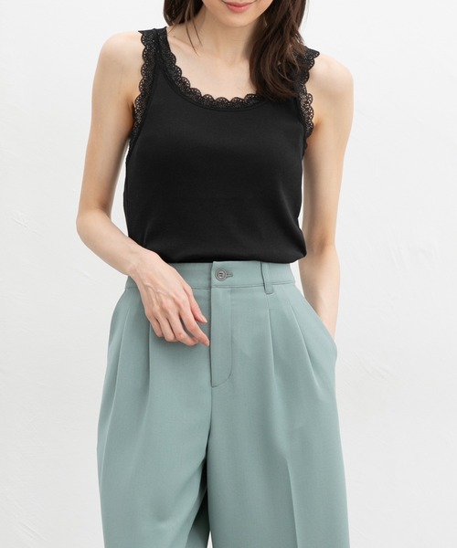 見えても可愛い 【デザイン】 袖ぐりと衿ぐりのレースがフェミニンな、大人可愛いデザイン。 体にフィットするコンパクトなシルエット。 【素材・機能】 ストレッチが利いて、着心地のよい綿混テレコ素材。 紫外線対策ができる『UVカット』と、素早く汗を吸収して乾きやすい『吸水速乾』機能付き。 【スタイル】 開きの広いトップスと合わせてレースを見せるのはもちろん、シャツやワンピースのインナーとしても、毎日大活躍。 品番:578-13-9340