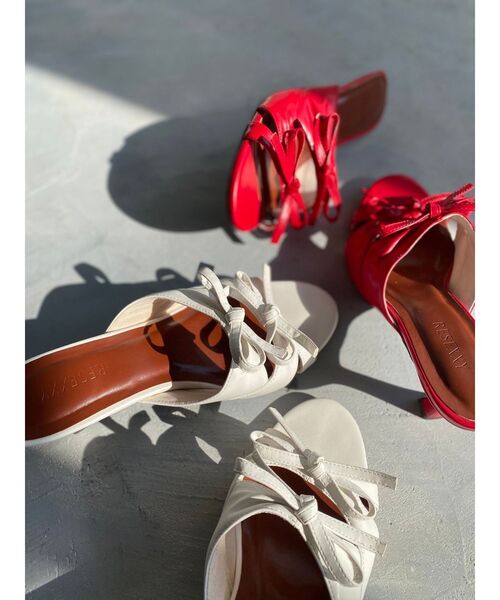 トレンドのリボンデザインのサンダルが登場 ▽デザイン▽ トレンドのリボンを付けたキャッチーなデザインサンダル。 華奢なリボンで足元から可愛らしさを演出できる一足です。 パンツやスカートなど様々なスタイリングで合わせやすく、デイリー使いにぴったりです。 白・赤の2色展開でコーデの差し色になります♪