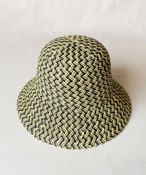 ラティス編みペーパーハットグリーンMIX:爽やかで涼しげ、中性的なミントカラー。オレンジMIX:ビビッドなコントラストがヘルシーでラテンチック。ピンクMIX:淡いピンクの甘さの中にブラックのスパイスが効く。どのカラーもかぶるとさりげない色の印象になり、コーディネートに馴染みます。ペーパーで編まれているので日差しを遮りながらも通気性が良く快適な被り心地です。<寸法 / SIZE>トップ:11㎝ブリム:8.5㎝サイズ:57~59㎝(サイズ調整可)※サイズ調節スベリ仕様(サイズを小さくする際は調節テープをまっすぐ引き出してください。逆向きに引っ張るとスベリを破損する可能性がございます。)<お手入れ方法>・ 使用した後は、防臭や消臭スプレーを「内側」にふりかけ風通しの良い場所で陰干しし、形を整えた状態で保管してください。・ 汚れた際は、薄めた中性洗剤を含ませた柔らかいスポンジ等で軽く拭き取ってください。・ 長期保管(シーズンオフ)の際は、帽子の内側にふんわり丸めた紙を詰め、形を保った状態で直射日光や蛍光灯の光は避け風通しの良い湿気の少ない場所にて保管してください。(紙は湿気を防ぐ役割をします。)