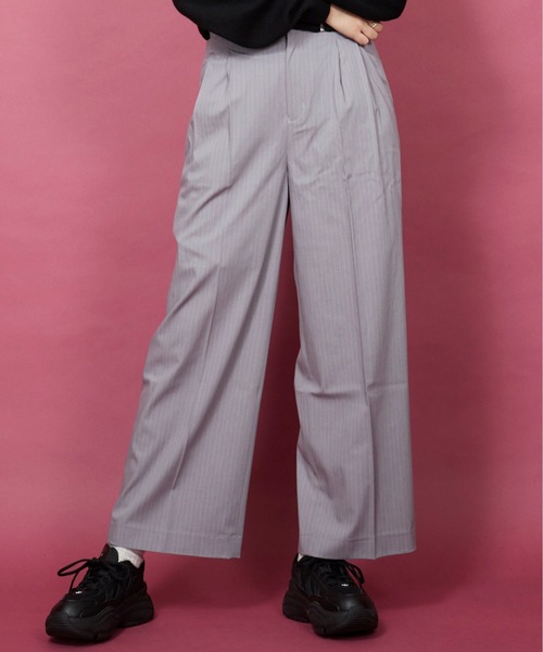 【ボリューム感のある上質なシルエット】腰回りに入った2タックにより上品な印象の仕上がりのスラックスパンツウエストに2タックが入ることで、腰回りはすっきりしながらもボリューム感のあるルーズなシルエットが楽しむことができます。ボリューム感を活かしたタックインスタイルや短丈Tシャツや短丈アウターに合わせるのもおすすめです。程よい光沢とドレープ感があるため、上品な雰囲気と存在感あるシルエットで万能な1着となっていますトレンド感のあるストレートシルエットも魅力の一つです。【穿き心地の良い質感】生地はしなやかで柔らかな肌触りを持ちつつ、ポリエステルの耐久性とシワになりにくさを兼ね備えている。さらにツータックが入ることによって穿き心地の良いワイドパンツに仕上がっています。綺麗な落ち感の出たストレートシルエットなので使い勝手もいい一本です。フロントはボタンとファスナーのディテールで、着脱もスムーズに可能です。ベルトループがございますので、オーバーサイズのものをベルトでぎゅっと締めての着用も可能です。【コーディネートに使いやすい万能な一本】ボリューム感のあるアイテムなのですっきりとしたトップスとのスタイリングで今っぽくキメるのが◎定番でもあるオーバーサイズデザインのパーカーやジャケットでもIラインの綺麗なラインのシルエットが作れます。スラックスパンツなので足元はドレッシーな革靴はもちろん、カジュアル感のある厚底スニーカーにもよく合います。ハイウエストデザインなのでスタイルアップにも一役買ってくれるパンツです。【マルチサイズとは】豊富なサイズ展開のため、「骨格ストレート/骨格ウェーブ/骨格ナチュラル」など様々な体型の方も、自分に合った1枚が見つかる新しい洋服の買い方です。「低身長~高身長」「やせ型~ぽっちゃり」など小さいサイズから大きいサイズまで、最大56サイズご用意しています。定番アイテムから、ビッグシルエットなどのトレンドアイテムまで幅広く展開中!※マルチサイズは、ZOZOTOWNのみでのお取り扱いになります。※サンプル品で撮影しているため、ボタンやファスナーなど一部の仕様が若干異なる場合がございます。