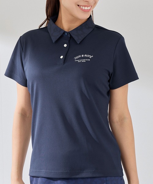【デザイン】 衿にアニマル柄を使用してポイントにしたポロ。フロントにくるみ釦を付け上品な印象に。 きちんと感がありながら遊びのあるデザインが嬉しい。 おそろいのスカートやサンバイザーのコーディネイトもおすすめです。 【素材】 リサイクルポリエステルを使用した繊細で編み目がソフトなクールマックス素材。 柔らかなタッチで肌触りもいい感触。ダブル組織で編みたてることで透けにくい編地となっています。 ーーーーーーーーーーーーーーーーーーーーーー 裏地:なし 光沢感:なし 透け感:ホワイトはやや透け感あり ポケット:なし 伸縮性:あり ーーーーーーーーーーーーーーーーーーーーーーー 【着用サイズ】 170cm 着用サイズ:M ※実際の商品はお客様のお使いの端末や閲覧環境により、写真と実物の色味や質感が多少異なって見える場合がございます。予めご了承ください。 ※画像の商品はサンプルです。実際の商品とは仕様・加工・サイズ・素材が若干異なる場合がございます。 JUN&ROPE’(ジュンアンドロペ) 2つのゴルフコース「ジュンクラシックカントリークラブ」「ロペ倶楽部」を有するJUNがお届けするゴルフウェアブランド。