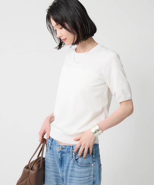 2025 SUMMER COLLECTION ワードローブに1つは欲しい、体型カバーが叶う万能トップス ーーー ◆DETAILポイント◆ ・ベーシックな半袖ニットプルオーバー。 ・少し長めの袖丈で二の腕をカバー◎ ・すっきりとしたシルエットながら、身体のラインを拾いすぎないデザイン。 ・こっそり入っている衿裏のラインもポイント。 ーーー ・Tシャツ感覚で着回せる万能さが何よりの魅力。 ・ジャケット等のインナーにもおすすめ。合わせるアイテム次第でロングシーズン着用可能! ◆COLORポイント◆ ホワイト:スタイリングをぱっと華やかにする、どんな日も頼れるホワイト。 ブラック:着回しの効くアイテムだからこそ持っていたいベーシックなブラック。 セイジ:ミントカラーを少しグレイッシュにした、大人にぴったりのポイントカラー。 ◆FABRICポイント◆ ・1枚で着用可能な厚みのある生地がポイント。 ・ややドライタッチでありながら柔らかく、しっかりと伸縮性もあり着心地の良さが特徴。 ・・・・・・・・・・・・ 洗濯:ホームケア(手洗い)OK 透け感:やや透ける 伸縮性:あり 生地の厚さ:普通 裏地:なし ※こちらは参考情報となります。カラーにより多少の誤差がございます。 ・・・・・・・・・・・・ 【BABYLONE / バビロン】 ”Be myself” 好きな色 好きなかたち 好きな着こなし 自分の好きは自分だけが知ってる 自分らしい自分を好きでいたい 時代のニュアンスを取り入れながらも まわりにとらわれない ブレないしなやかな女性たちへ 【気になる商品は「お気に入り」登録を】 ハートマークをクリックし、お好きなカラーを選んでお気に入りに登録すると 在庫残り僅かの通知、再入荷通知などの情報を受け取ることができます。