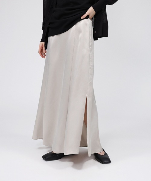 2025 SUMMER COLLECTIONキュプラの洗練された光沢感で魅せるマーメイドスカートーーー◆DETAILポイント◆・キュプラ素材のマーメイドスカート。・ヒップ周りはボリュームを抑えたスッキリ見えシルエット。・左脇にさりげなく入ったスリットで大人の肌見せと抜け感をプラス。・ウエストはゴム入りで楽ちんな履き心地です。ーーー◆COLORポイント◆グレージュ:ホワイト感覚で着回せる、抜け感のあるニュアンスカラー。チャコール:素材の光沢がより際立つチャコールは、夏でも軽やかに着こなせる頼れるダークカラー。◆FABRICポイント◆・ブライト糸を使用した光沢感の強いサテンキュプラ。・さらにフィブリル加工を施すことでシルキータッチで膨らみのある風合いに。◆おすすめコーディネート◆・リネンなどの天然素材と合わせて素材感のコントラストを楽しむのがおすすめ。・ゆったりとしたニットや身幅のあるショートトップスもバランス良く着こなせます。・・・・・・・・・・・・洗濯:ドライクリーニング透け感:やや透ける伸縮性:なし生地の厚さ:普通裏地:なし※こちらは参考情報となります。カラーにより多少の誤差がございます。・・・・・・・・・・・・【BABYLONE / バビロン】”Be myself” 好きな色 好きなかたち 好きな着こなし 自分の好きは自分だけが知ってる 自分らしい自分を好きでいたい時代のニュアンスを取り入れながらも まわりにとらわれない ブレないしなやかな女性たちへ【気になる商品は「お気に入り」登録を】ハートマークをクリックし、お好きなカラーを選んでお気に入りに登録すると在庫残り僅かの通知、再入荷通知などの情報を受け取ることができます。